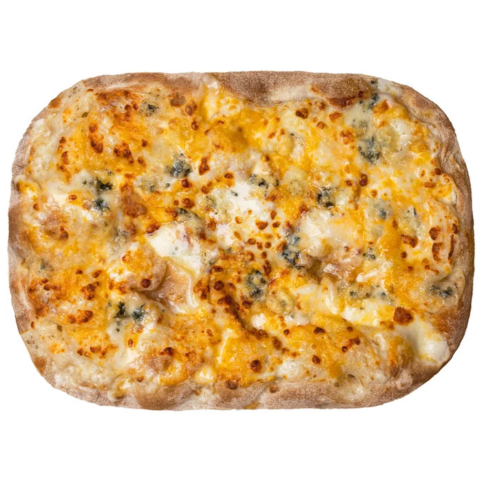 Состав: основа для пиццы отпеченная, сыр с ЗМЖ, масло сливочное, белок молочный, соус сырный, напиток молокосодержащий с ЗМЖ, сыр с голубой благородной плесенью, сыр чеддер полутвердый фасованный, сыр твердый.