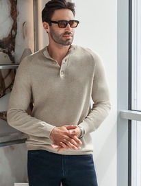 Джемпер хенли из полотна пике с меланжевым плетением с эластаном