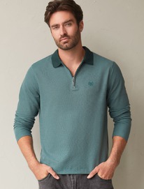 Лонгслив из мягкого фактурного трикотажа с плетеным воротником поло на молнии