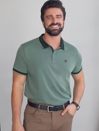 Футболка поло с воротником на пуговицах из полотна пике с меланжевым плетением с