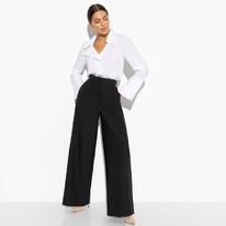 stradivarius Wide-Leg-Hose mit Stretchbund und Leinenanteil