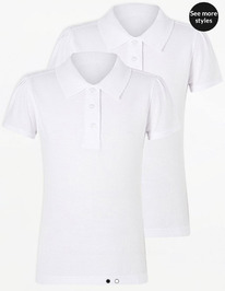 ASDA поло дев./Girls White Scallop School Easy On Polo Shirt РЯД