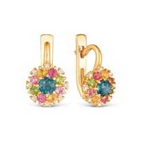 Серьги из золочёного серебра с лондон топазом, турмалином и фианитами