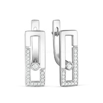 Серьги из серебра с фианитами родированные