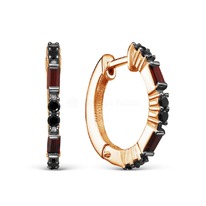 Серьги из золочёного серебра с нат.гранатом, нат.шпинелью и родированием