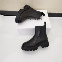 Полусапожки женские на литой подошве Черные, кожа, молния с опушкой.