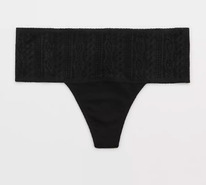 American eagle Aerie Cotton Cable Lace Thong Underwear True Black