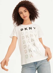 DKNY Short Sleeve Crinkle Foil Stacked Logo Tee white