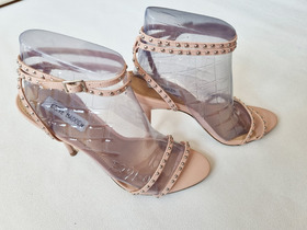 Новые сексуальные босоножки с открытой пяткой известного американского бренда Steve Madden, Women's Dress Sandal. Придайте своему стилю сексуальности используя эти очаровательные босоножки на шпильке. Кожаный верх с шипованной отделкой, завязывающийся ремешок на щиколотке с пряжкой, открытый носок, искусственная подкладка, слегка мягкая стелька. Цвет: Blush Leather, бежевый. Размер: 10М US, 40 наш, каблук 108 мм. Без коробки.