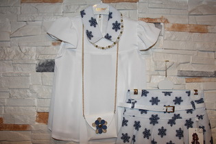 Ciciki kids Нарядный комплект для девочки ( блуза, юбка, сумочка, бусы)