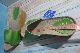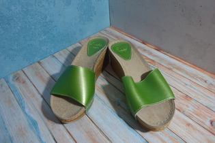 Новые, натуральная кожа. Высота танкетки 6 см, длина по стельке 23 см. Красивый зелёный металлик. Заказывала из Германии, corso