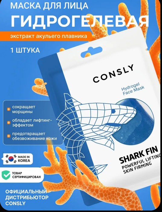 — Гидрогелевая омолаживающая маска для лица с экстрактом акульего плавника Consly