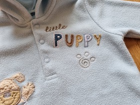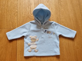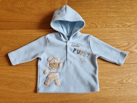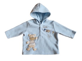 Б/У худи для новорожденного. В этом уютном флисовом худи, ваш малыш будет чувствовать себя тепло. А интересный дизайн с щенком непременно придется по душе. Планка на кнопках, длинный рукав, и вышитый щенок. Цвет: blue. Состав: 100% полиэстер. Размер: 0-6 months, для мальчика 0-6 месяцев, ростом 60-68 см. Состояние: б/у, отличное.