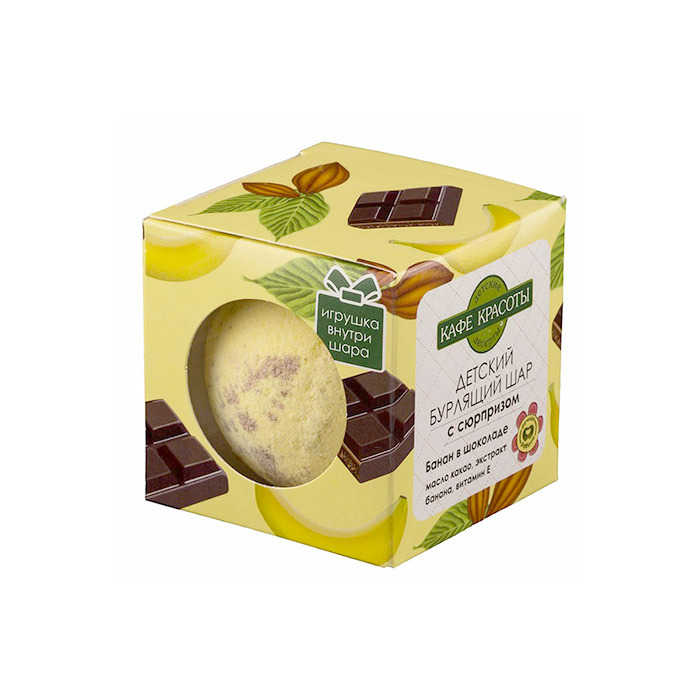 Детский бурлящий шар для ванн с сюрпризом «Банан в шоколаде» ТМ «Кафе красоты» нежно ухаживает за чувствительной кожей. С этим средством малышам понравится принимать ванные процедуры.