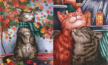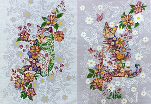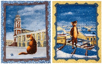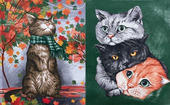 Комплект полотенец рогожка (2 шт), хлопок 100%, размер - 50х60 см. Забавные принты и натуральный состав. Приятный и полезный подарок для любой хозяюшки. Виды: Кот в шарфе+2 кота, Кот в шарфе+3 мордочки, Питерские коты, Кошки в цветах, Олени, Гномики+домики