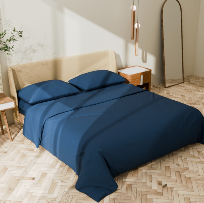 Комплект постельного белья из поплина Лепесток синий/жёлтый
