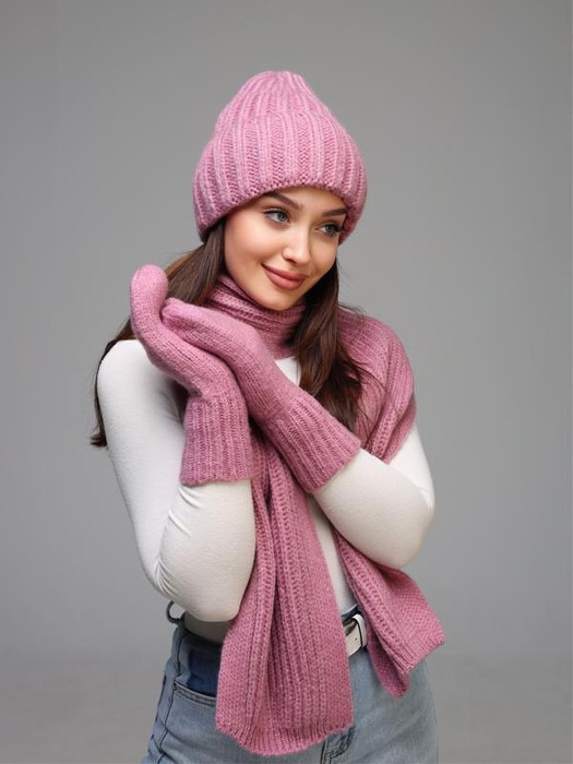 Заказать Комплект «ВЕСТА new» (шапка+шарф+варежки) Цвет Брусника Б/У