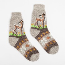 Носки шерстяные женские Оленёнок серо-бежевый р23