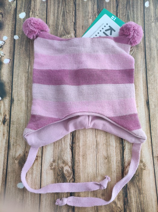 Шапка вязаная на х/б подкладе с помпошкой Бантик 38-42