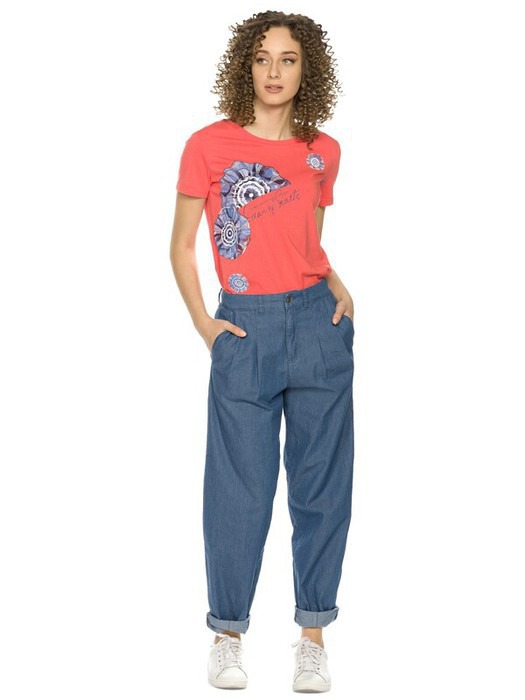 Джинсы слоучи с актуальной высокой посадкой. По спинке резинка для идеального прилегания. Спереди заложены и застрочены складки для комфорта, без лишнего объема. По низу брючин спереди вытачки, создающие форму банан. Полная длина позволяет делать широкую подгибку. 4 кармана.