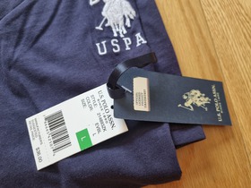 Новое оригинальное платье известного американского бренда U.S. POLO ASSN, USPA SNEAKER DRESS. Наслаждайтесь теплой погодой в платье-футболке с короткими рукавами. V-образный вырез и большой вышитый логотип в левом верхнем углу спереди. Машинная стирка. Цвет: EVENING BLUE. Состав: 100% хлопок. Размер: L. Замеры: длина по спинке 93 см, длина рукава по внешнему шву 16 см, длина рукава по внутреннему шву 3 см, ширина между плечевыми швами 38 см, ширина между подмышек 50 см, ширина подола 60 см.