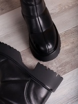 Ультрамодные кожаные дутики на толстой подошве с устойчивым каблуком утепленные нетуральным мехом!