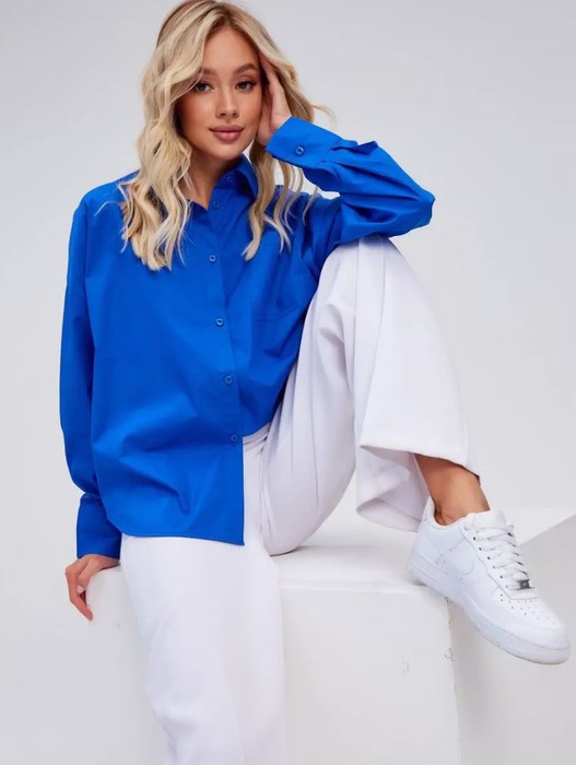 Vilatte Блузка с полоску с цельнокроеной проймой D29.789 белый-голубой