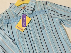 Новая, в упаковке рубашка Play Today. Цвет: голубая в полоску. Состав: 100% хлопок. Размер: 110 для мальчика 5 лет, ростом 110 см.