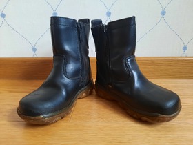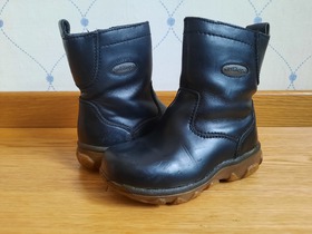 Б/У, зимние сапоги российского производителя Антилопа, артикул 23141-1088. Зимние сапоги для мальчика из натуральной кожи, внутри натуральный мех, теплые, уютные. Без каблука и теплой меховой подкладкой и стелькой. Цвет: черный. Состав: натуральная кожа 100%, подкладка натуральный мех 100%, подошва резина 100%. Размер: 24 наш, длина по стельке 15,5 см, длина стопы 15 см. Без коробки. Состояние: б/у, удовлетворительное, есть потертости на носке, отслаивание краски с кожи.