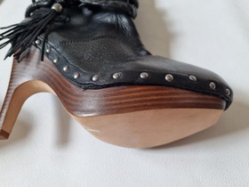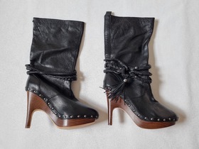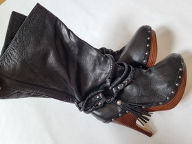 Новые демисезонные сапоги известного итальянского бренда Dolce Vita, Women's Henrietta Platform Boot. Брендовые стильные женские сапоги Dolce Vita, кожа класса люкс – одна из разновидностей старинного сафьяна; очень прочная, мягкая, ласкающая ноги, со сдержанным классическим природным рисунком и приятной рельефностью. С изогнутой пяткой на платформе, кольцо с кисточкой соединяет текстурированные ремешки с заклепкамина щиколотках со средней частью голени, сбалансированного на пятке и платформе с металлической отделкой серебристого цвета, заклепками на платформе, кожаная подкладка и стелька. Этот стиль без застежек отлично смотрится надетым поверх джинсов или мини. Цвет: Black. Состав: натуральная кожа 100%. Размер: 9 M US, 39 наш, высота каблука примерно 11,5 см, высота платформы примерно 32 мм. Без коробки.