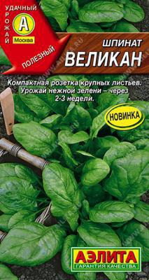 Раннеспелый сорт однолетней зеленной овощной культуры. Период от полных всходов до начала потребительской годности чуть более 2-3 недель. Розетка листьев формируется быстро, она вертикальная, густая, компактная, высотой и шириной около 17-20 см. Листья нежные и сочные, очень вкусны в качестве начинки для выпечки. Шпинат по праву относят к растениям рекордсменам по содержанию биологически активных, полезных для здоровья веществ. Он используется в свежем виде в салатах, закусках, соках и смузи, после термической обработки – в гарнирах, супах, рагу. Сорт отличается устойчивостью к мучнистой росе.