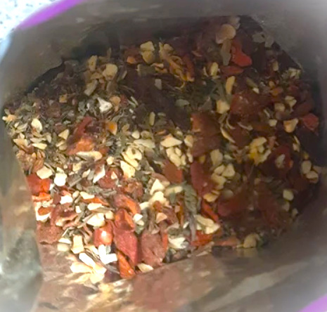 Состав: сушёные томаты, сушёный чеснок, паприка красная хлопья, базилик