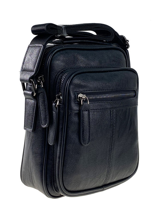В сумке одно отделение на молнии, внутри карман на молнии и открытый карман для телефона. Снаружи, на задней стенке, карман на молнии. На фронтальной стенке накладной карман на молнии с прорезным карманом на молнии. Цвет сумки чёрный, размер S.