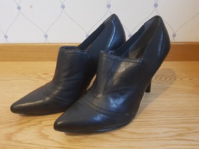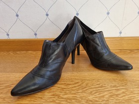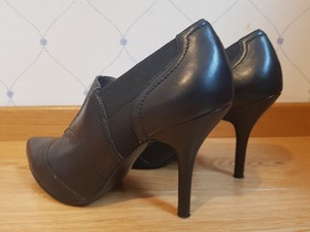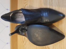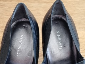 Туфли известного американского бренда Nine West, Next Up. Nine West – это бренд, с которым просто необходимо познакомится любителем про западной культуры одежды и обуви. Под именем выпускаются коллекции оригинальной обуви и аксессуаров для женщин и мужчин. Кожаные туфли выполнены с эластичными боковыми элементами, что обеспечивает лучшую подгонку и комфорт при ношении. Цвет: Black/Black Leather. Состав: натуральная кожа 100%. Состояние: б/у в хорошем состоянии, видимых следов износа не видно. Размер: 10 US , 40 наш, длина по стельке 26,6 см, высота каблука 10 см.