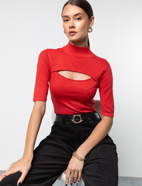 Тонкий джемпер с люрексом и трендовым вырезом